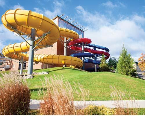 Located in the Pocono Mountains of Pennsylvania, the resort provides a 27-hole championship golf course with a clubhouse, locker room, and fully stocked golf shop. The nearby Split Rock Resort grounds have indoor and outdoor swimming pools, along with a 53,326-square-foot (4,954 square meters) indoor water park with FlowRider and wave pool. There are three restaurants from which to choose, great daily activity programs, indoor and outdoor basketball, indoor and outdoor tennis, and much more, all situated on beautiful Lake Harmony. Also available are an indoor fitness center, movie theater, bowling alley, arcade, ice cream parlor, and pizza shop. On-Site
