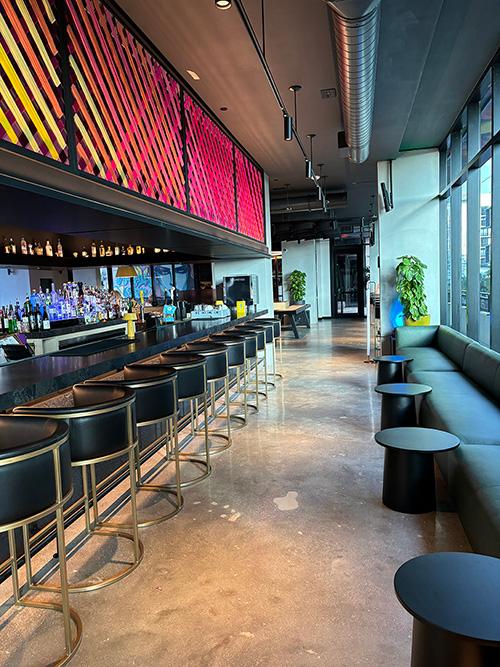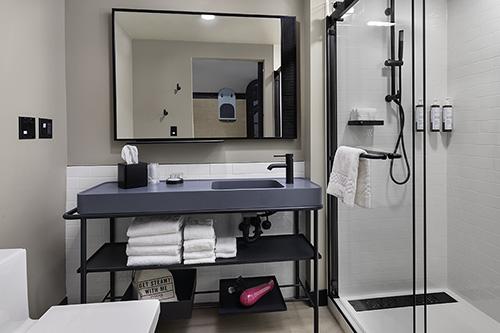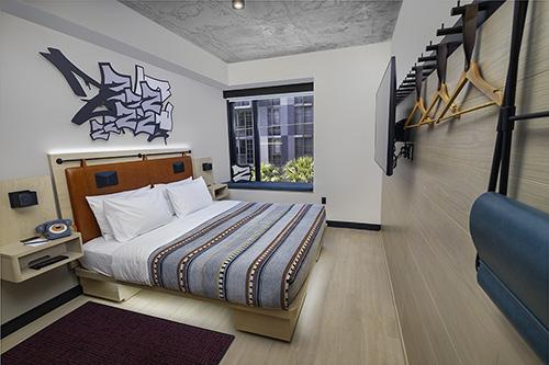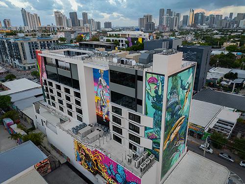 Moxy Miami Wynwood is located a block from the famous Wynwood Walls street art museum and minutes from trendy restaurants, craft breweries, and vibrant nightclubs. Each chic bedroom features a full-height art image, leather lounge chairs, motion-activated LED guidelight below the bed and backlighted glass panels, and flat-screen TV. Guests can start their Moxy experience with a complimentary cocktail at Bar Moxy when checking in. The bright and open lobby layout is paired with contemporary furniture. The Plug and Meet gathering areas provide modern ergonomic seating. The lobby also boasts a state-of-the-art video wall and Grab & Go 24/7 snacks and drinks.